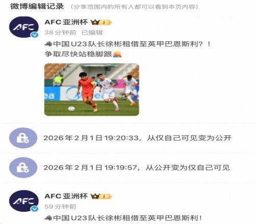 北京时间2月1日,亚洲杯官博发布动态,宣布U23国脚徐彬将租借加盟英甲球队巴恩斯利。